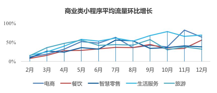 从C端的访问量来看,零售类占比24%,餐饮类占比13%,生活服务类占比11%。智慧零售异军突起,其中生鲜电商、母婴电商、时尚电商等细分行业表现尤为突出。不过,小程序并不是因零售而生,它的心很大。