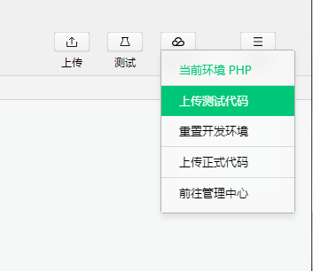 5.点击界面右上角的【腾讯云】图标,在下拉的菜单栏中选择【上传测试代码】。