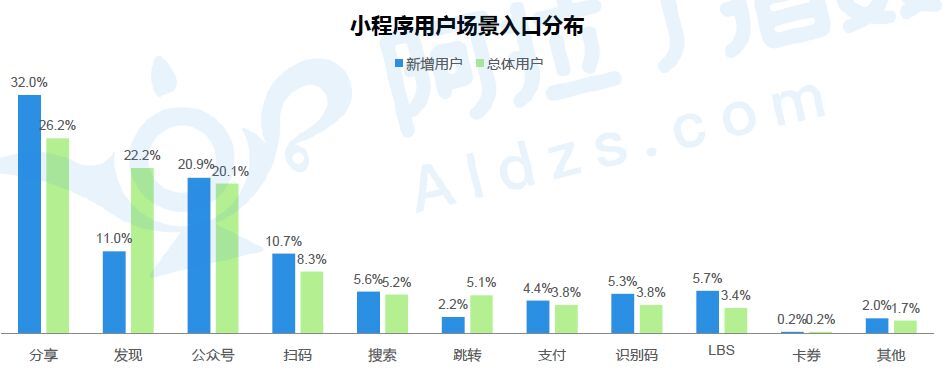 如下图,小程序用户各场景入口的分布情况。